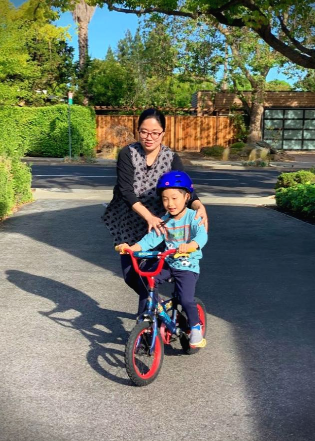 처음으로 네발 자전거에서 보조바퀴를 때고 두발 자전거를 탔다.