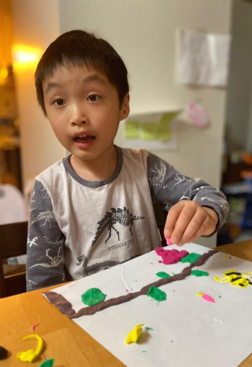 이번에는 색깔찰흙으로 그림을 그려보았다.