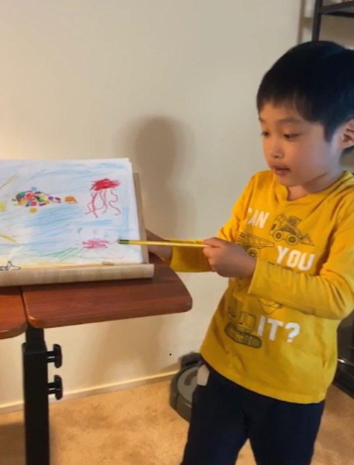 엄마랑 그린 바닷속 그림을 설명해주는 선재~
