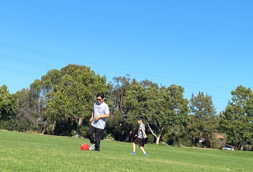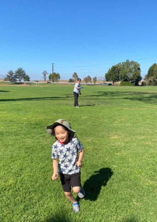 아빠랑 놀다가 목 마르다고 물 달라면서 달려오는 선재~