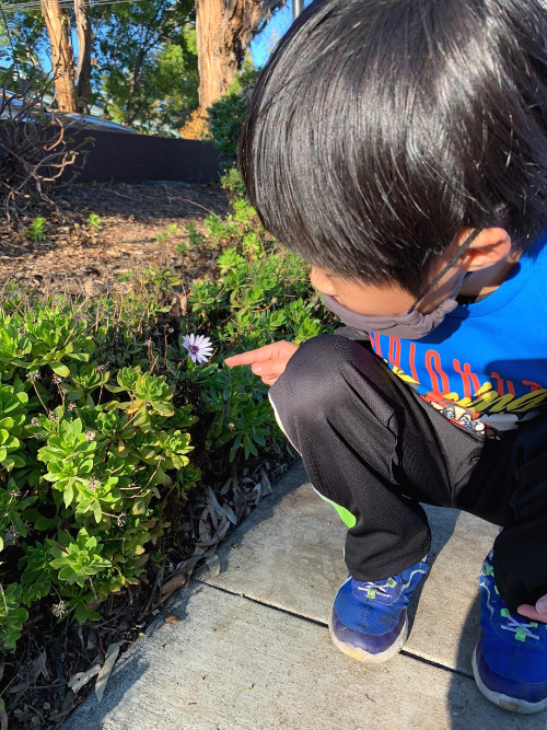 봄이 오는 듯 동네 곳곳에 핀 꽃들을 보면서 좋아하는 선재!