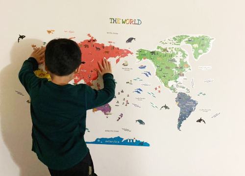 요새 지도에 관심이 많은 선재를 위해 선재 방 벽에 세계지도를 붙였다.