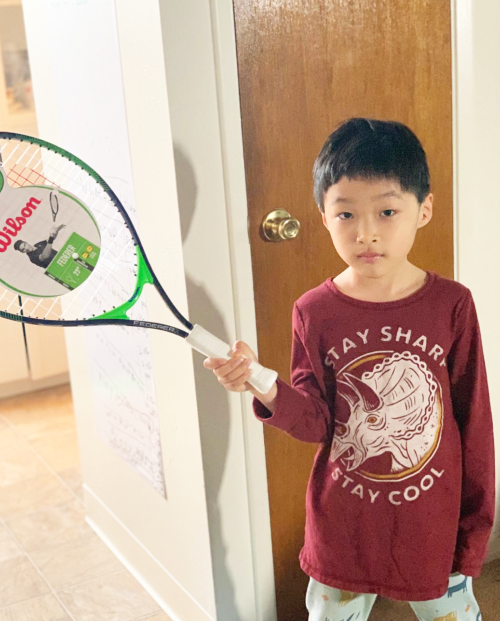 테니스 사가지고 와서 폼 잡는 선재 ^^