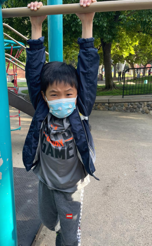 공원근처에 있는 회관에서 백신 맞는 동안 엄마랑 놀이터에서 노는 선재~