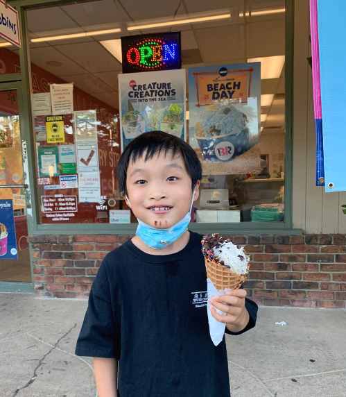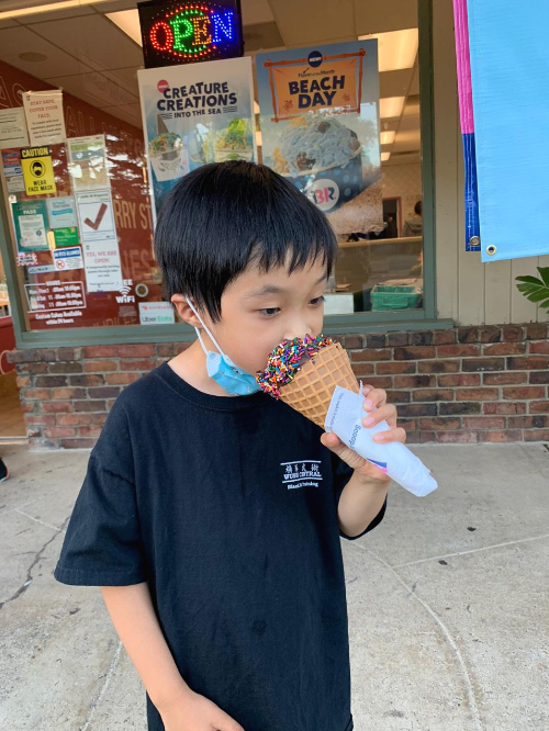 노란띠 딴 기념으로 아이스크림 사먹는 선재~