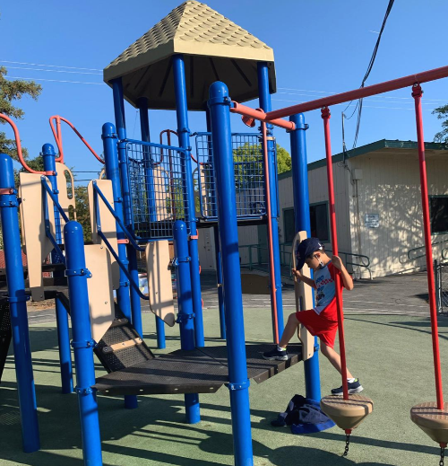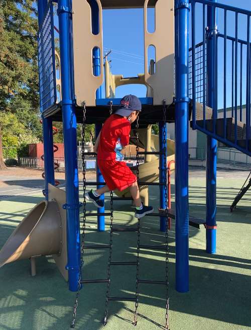 학교안 놀이터에도 들어가서 잠시 놀아보는 선재~
