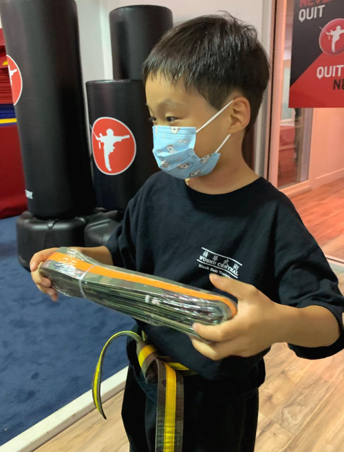주황띠 매고 단증들고 사진 찍는 선재~ ^^