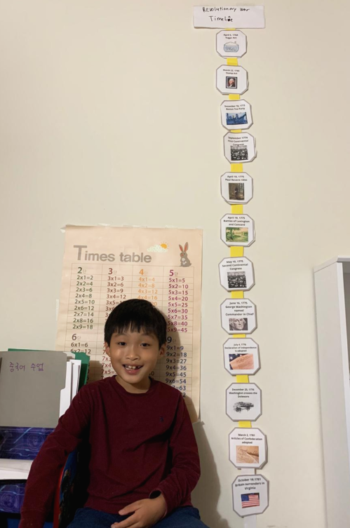 수업을 잘 따라했다. 오늘 만든 연도표를 자랑하면서 꼭 전부 다 나오게 사진찍어달라고 했다.