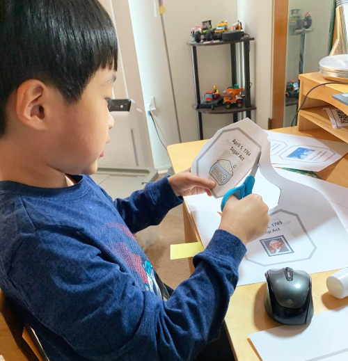 붙여서 만든 연도표도 만들면서 즐겁게 참여하는 선재~