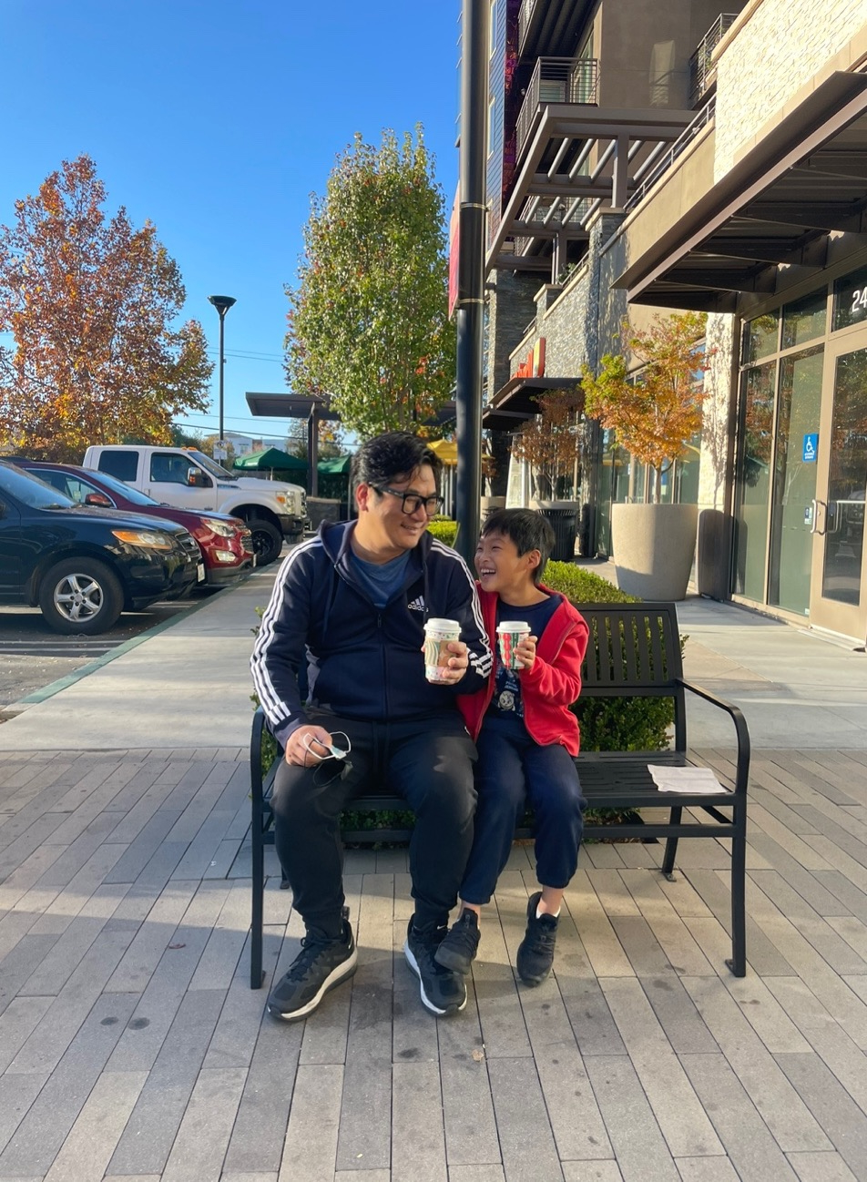 아빠랑 엄마는 커피, 선재는 따뜻한 우유를 마시면서