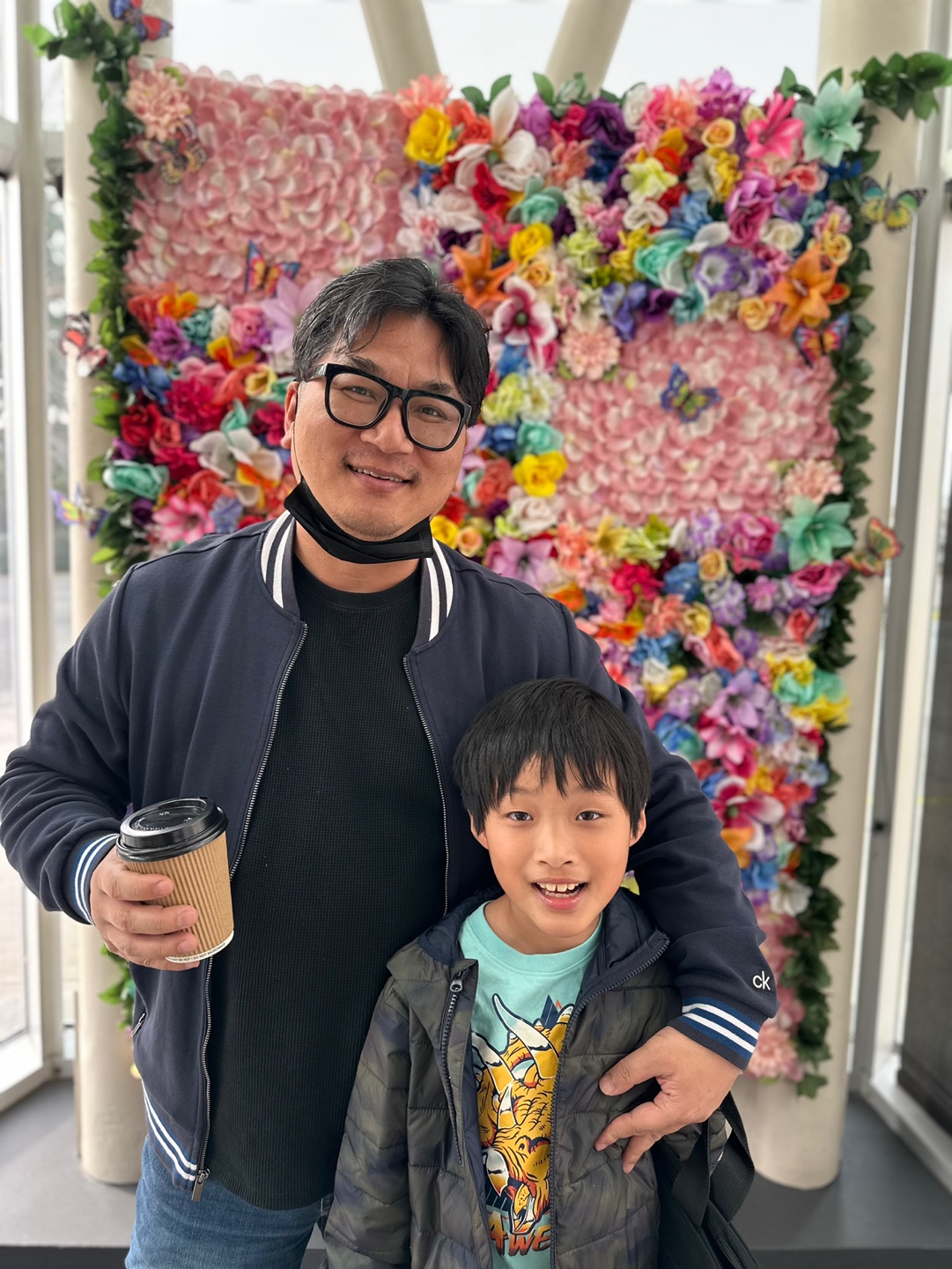 새로 생긴 카페의 이쁜 꽃장식 앞에서!