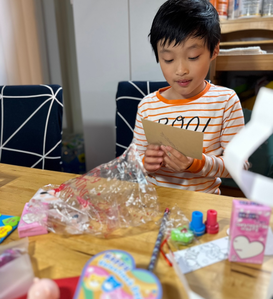 친구들에게 받은 카드 읽어보고, 선물 풀어보고 좋아하는 선재~