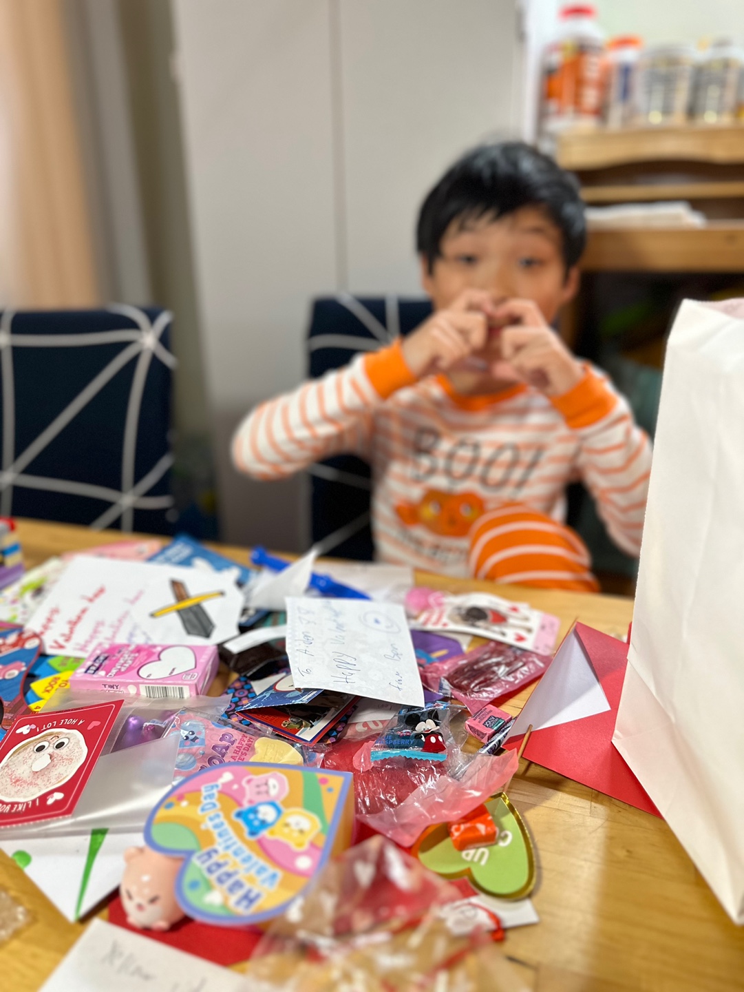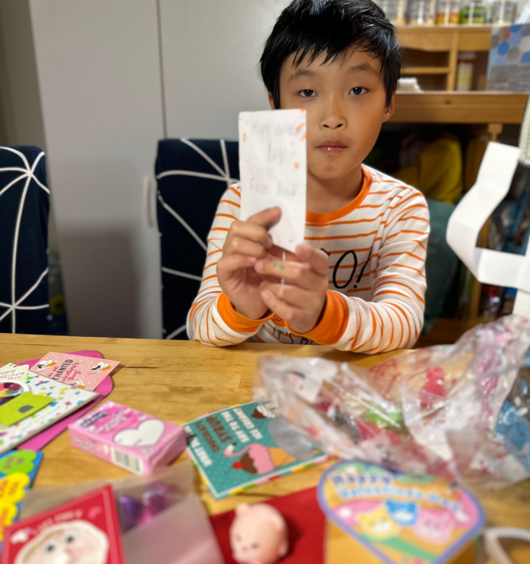 발렌타인데이라서 친구들과 초코렛이나 캔디, 카드를 서로 나누어 가졌는데,
