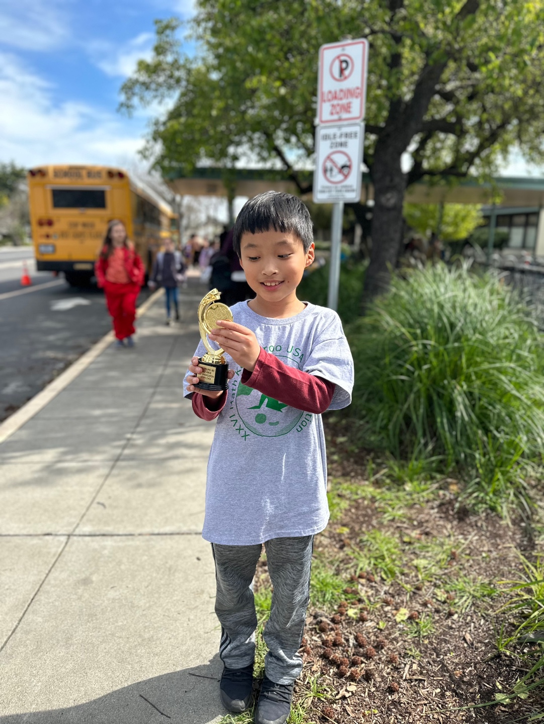 교장선생님에게서 트로피를 받고, 전교생에게 박수를 받았다면서 좋아했다.