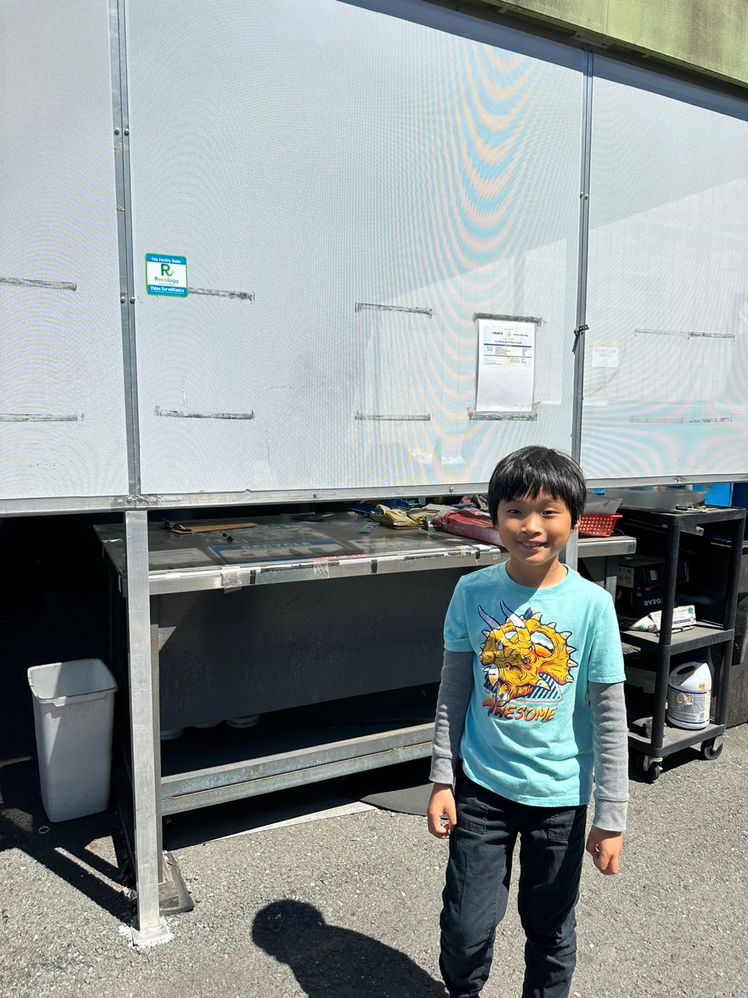 오랜만에 재활용 센터에 와서 플라스틱 빈 물병들을 재활용하고 용돈 벌은 선재!