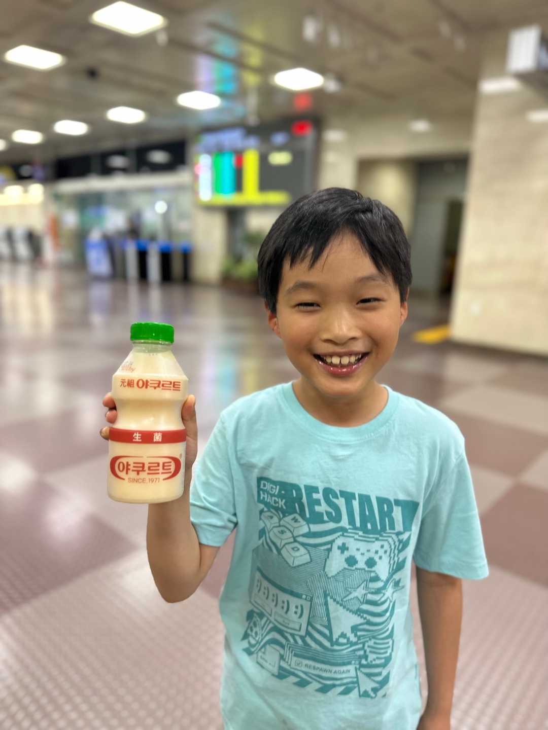 공항 편의점에서 커다란 야쿠르트를 사고 나서 기분좋은 선재~