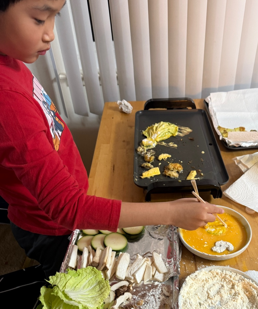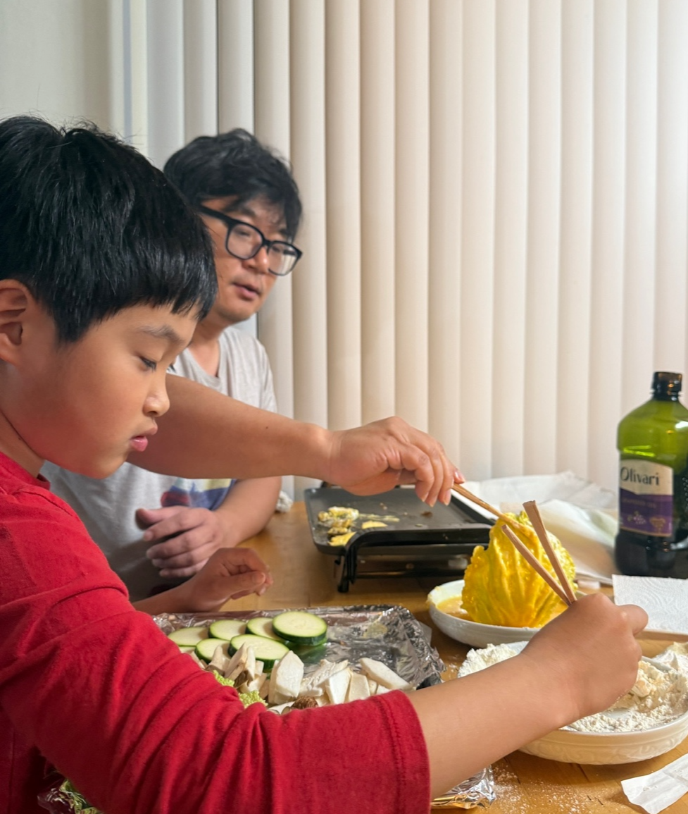 아빠와 함께 전 만들고 있는 선재~