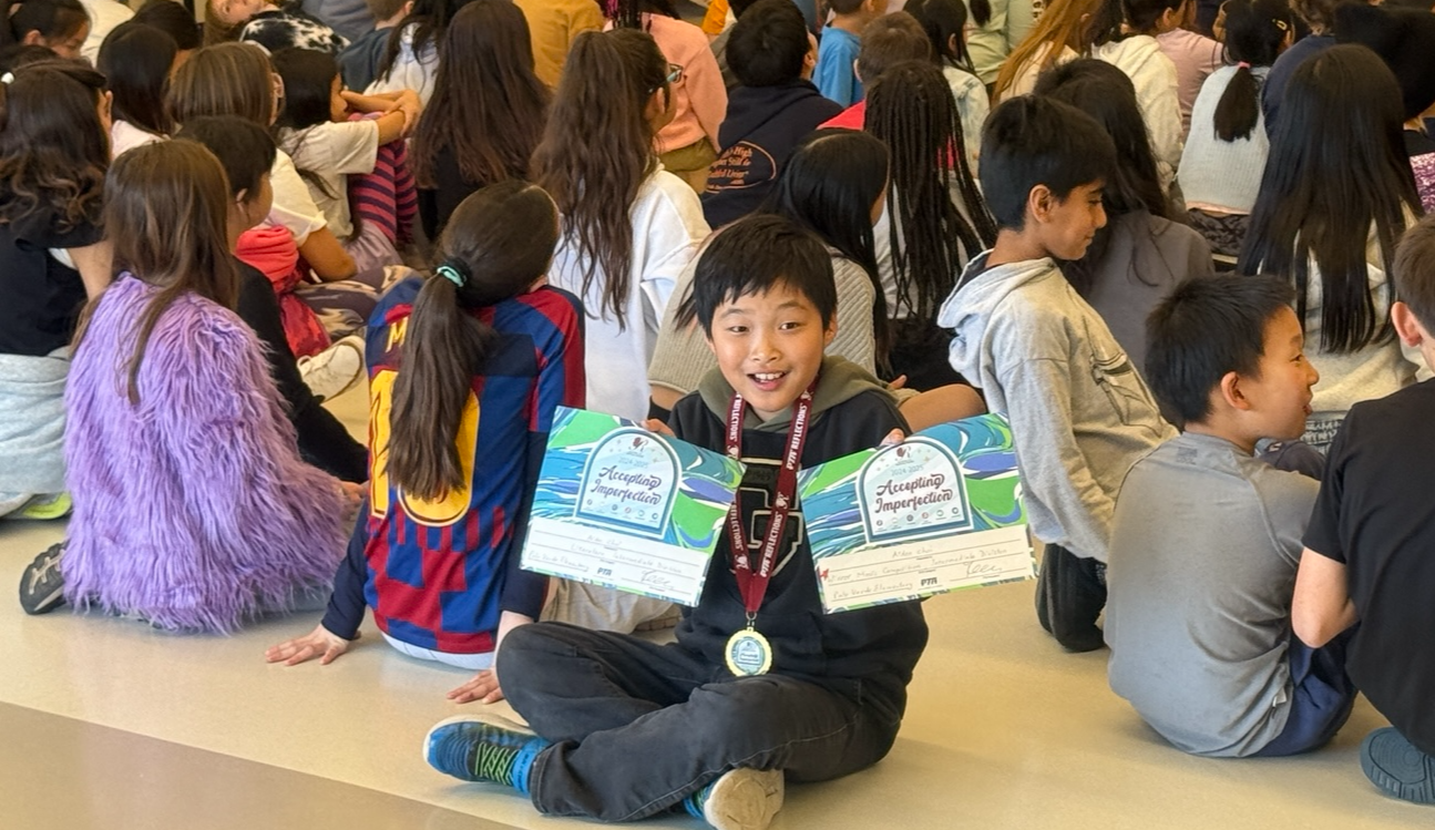 음악작곡으로 학교대표가 되어 지역대회로 나가게 된 것을 축하하며 상장과 트로피를 받게 되었다.
