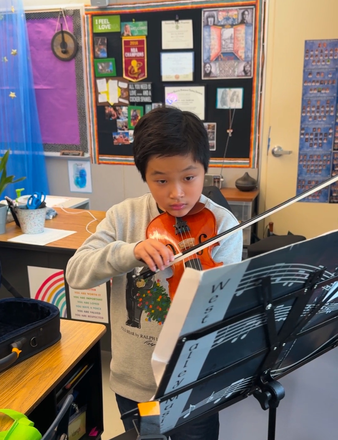 2주간의 겨울방학전에 바이올린 연습하는 것을 학부모 참관하러 오라고 하여서